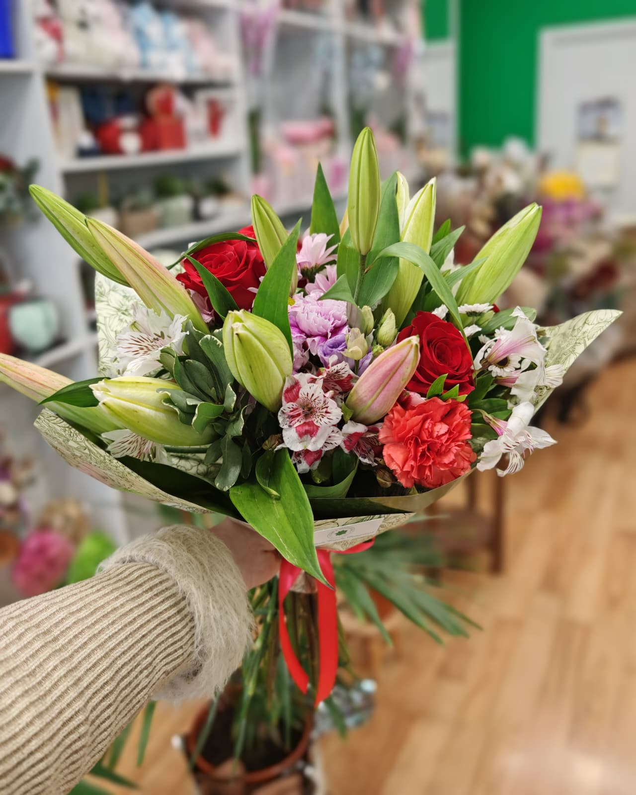 Con lily y claveles